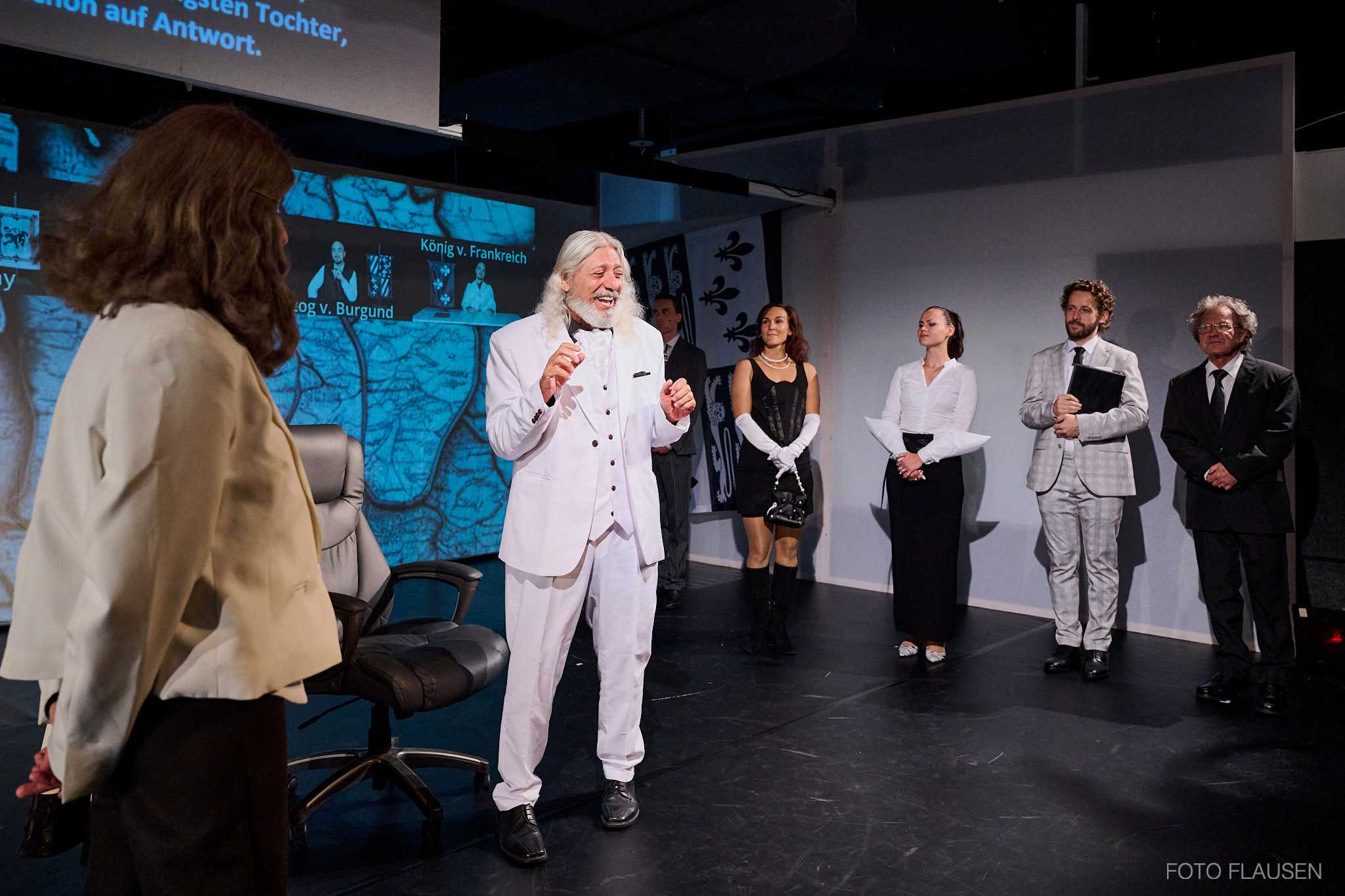 Die Fotoprobe für das aktuelle Theaterprojekt von Theater Ecce bot eindrucksvolle Einblicke in eine kraftvolle Neuinterpretation von Shakespeares „König Lear“. In der Inszenierung wird die Geschichte des alten Patriarchen zu einer zeitgenössischen Analyse politischer und gesellschaftlicher Machtstrukturen – und zeigt, dass sich auch nach über 400 Jahren an den Grundfragen des Menschseins wenig verändert hat.